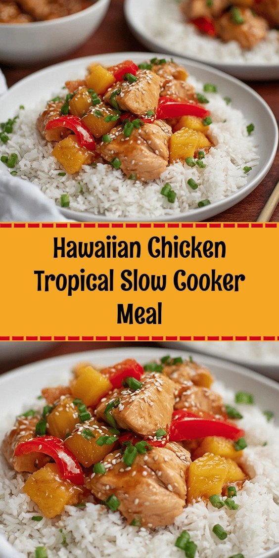 Get a taste of the tropics with this easy Hawaiian Chicken! A sweet and savory slow cooker meal with pineapple & peppers. Perfect for a busy weeknight dinner. Hawaiian Chicken, Slow Cooker Hawaiian Chicken, Crockpot Hawaiian Chicken, Easy Hawaiian Chicken Recipe, Tropical Chicken Meal