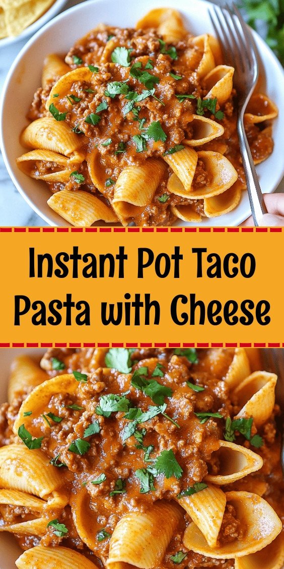 This creamy Instant Pot Taco Pasta is a one-pot wonder! A quick, family-friendly dinner loaded with ground beef, zesty seasonings, and lots of melted cheese. Instant Pot recipes, easy dinner ideas, family meals, taco pasta, one pot recipes.