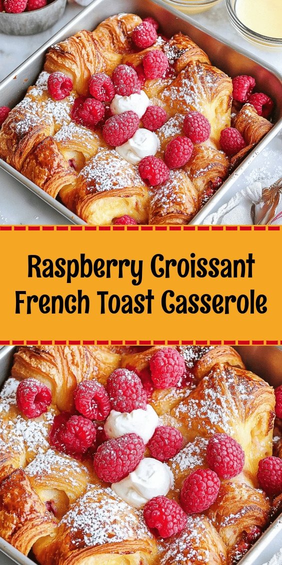 Wake up to the ultimate make-ahead breakfast! This Raspberry Croissant French Toast Casserole is an easy, decadent brunch recipe bursting with sweet, tart flavor. Overnight french toast casserole, easy brunch recipe, raspberry croissant bake, french toast casserole, make ahead breakfast, holiday brunch ideas.
