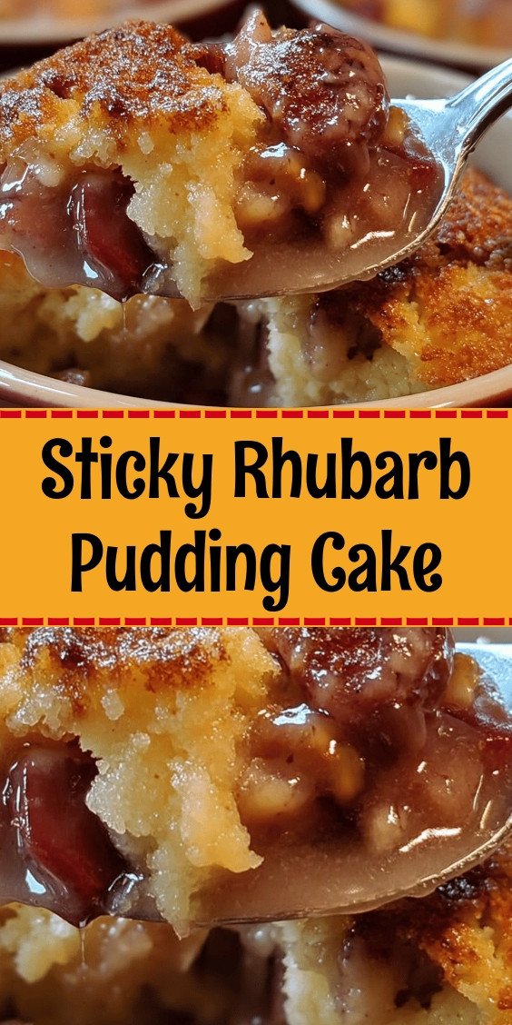 sticky rhubarb pudding cake, rhubarb dessert, easy spring dessert, comforting pudding cake, best rhubarb recipes